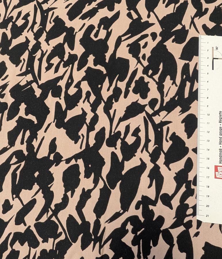 Viskooskangas mustad laigud beežil /kleidiviskoos on kerge ja lendlev kangas, mis sobib kleitide-pluuside-seelikute õmblemiseks. NB! Ei ole trikotaažkangas!