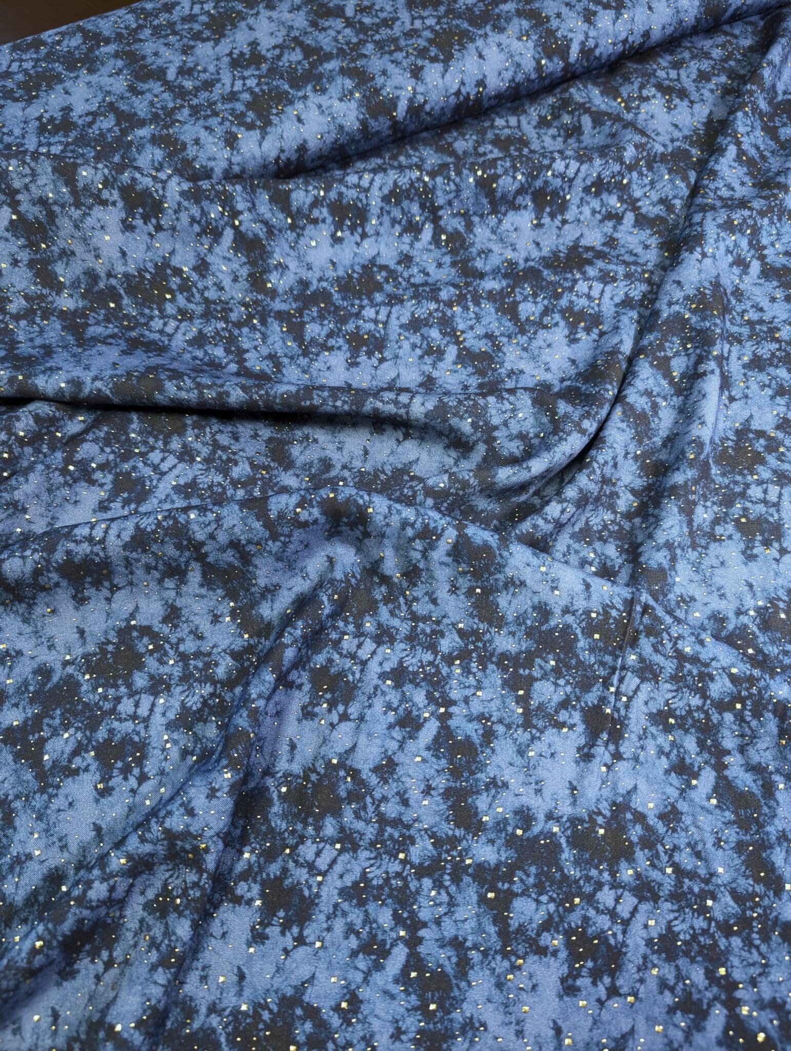 Kleidiviskoos teksasinine batika sädelevate täpikestega