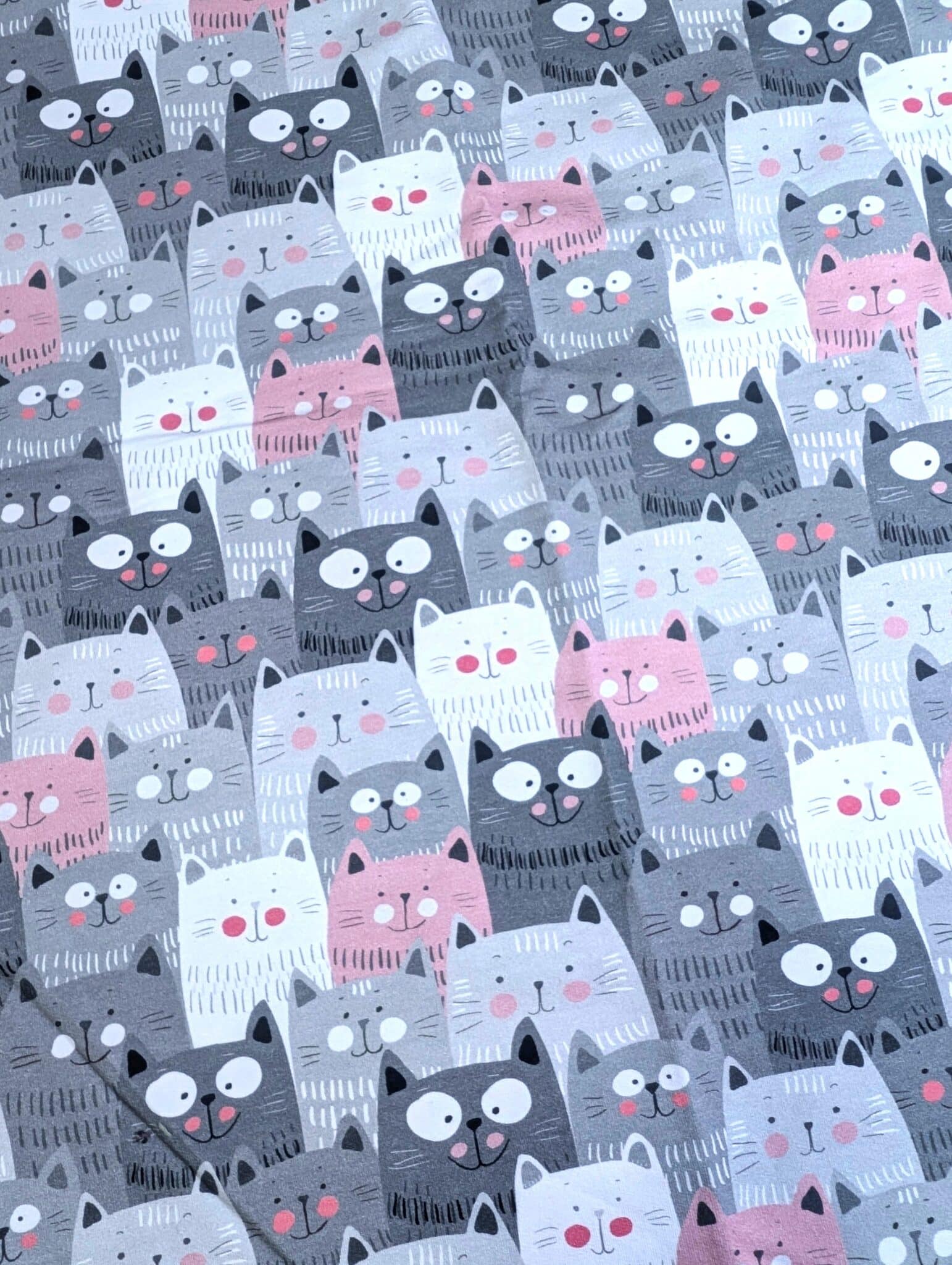 9,00 €Algne hind oli: 9,00 €.7,50 €Current price is: 7,50 €. Lisa korviDressikangas hallid/roosad kassid (“aasaline”) / French Terry 0,63m tükk